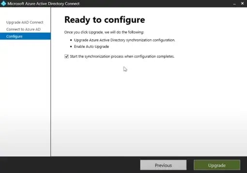 Vous pourrez alors démarrer le processus de mise à niveau de votre service de synchronisation :