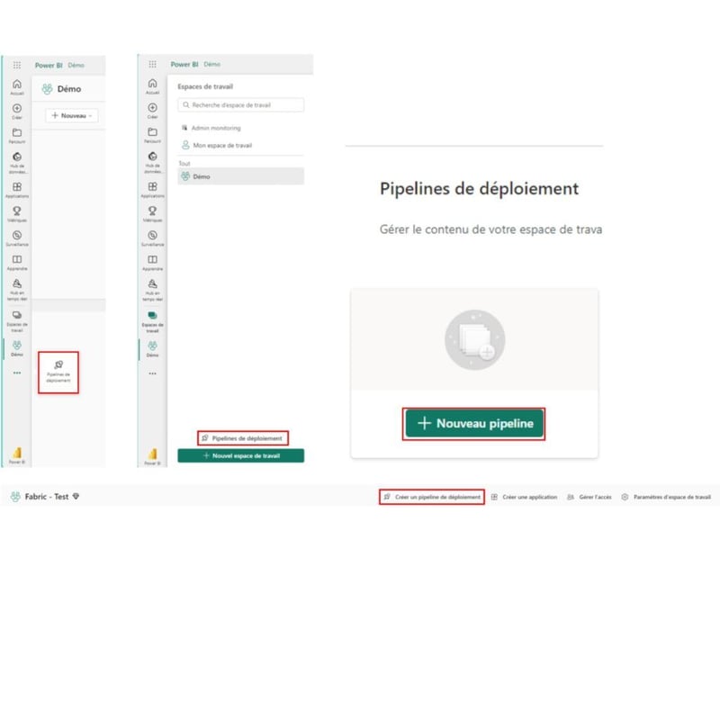 -> Dans « Espace de travail » puis « Pipeline de déploiement » puis « Nouveau Pipeline« .