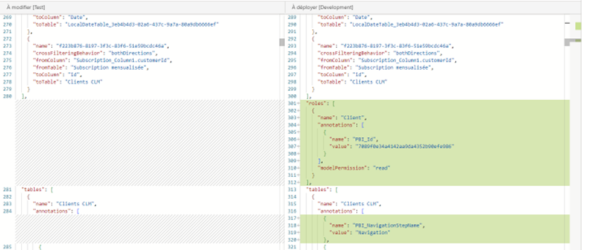 Ces règles permettent de basculer sur la donnée de production lors du déploiement en phase de production par exemple. Elles permettent également de développer avec un modèle sémantique restreint grâce à un paramètre puis agrandi lors du passage en phase de test.