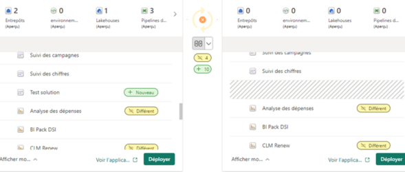 Permet d’afficher quels sont les éléments différents ou inexistants dans les deux espaces de travail comparés.