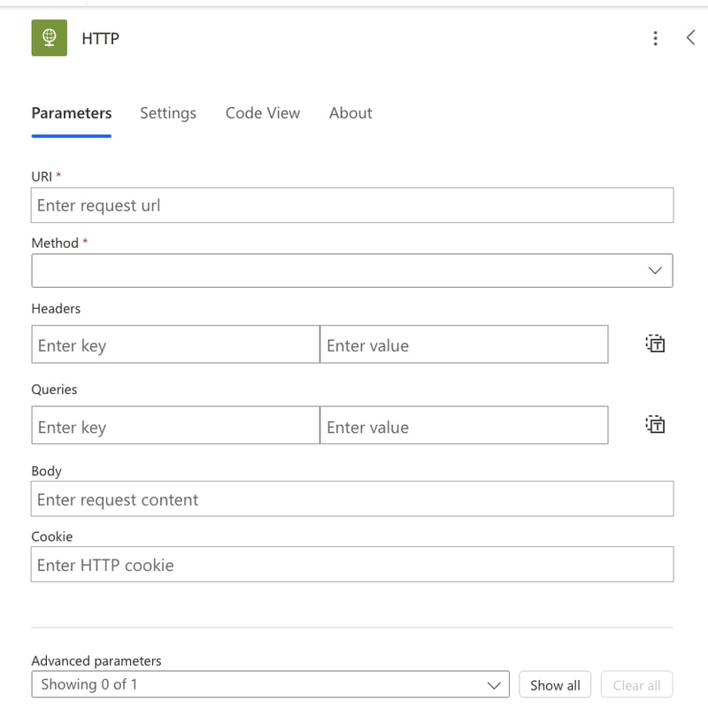 Dans le champ « URI« , entrez l’URL de l’API que vous souhaitez interroger. Cette URL est l’endroit où Power Automate enverra la requête pour récupérer les données. Par exemple, si vous interrogez une API Graph, l’URL pourrait être