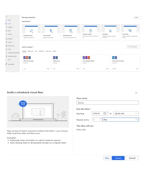 - Dans la section « Start from blank« , choisissez « Scheduled cloud flow » pour créer un flux planifié selon vos besoins.