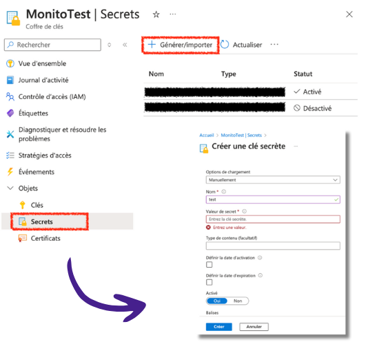 Ajouter des Secrets au Key Vault