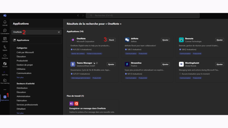 - OneNote est l’application de prise de notes de Microsoft, permettant de centraliser les informations pertinentes pour les projets et les discussions. Son intégration dans Teams permet de prendre des notes directement pendant les réunions et de partager ces informations instantanément avec toute l’équipe.